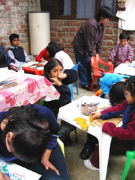 Die Frauen haben sich in 5 Gruppen organisiert, die an festgelegten Tagen die Werkstatt nutzen können. Während der Werkstattarbeit werden die kleinen Kinder von einer aus Projektmitteln finanzierten Kindergärtnerin betreut.